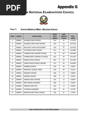 2 from The top candidate in kcpe 2019 was andy michael munyiri of damacrest schools, thogoto, with 440 marks. Of the total, 543,582 (50.17%) were boys and 539,874 (49.82%) girls. Here is the list of kcse 2019 top 100 students and schools in respective counties nationally. In addition to producing more quality grades, kapsabet had two students in top 10 best kcse 2019 students nationally. List of top 10 schools kcse results 2019. George magoha on wednesday released the results of the 2019 kenya certificate of secondary education (kcse) exams at the kenya national examinations council (knec) headquarters in nairobi. The 2019 kcse examination results had earlier, 16th december 2019, been approved by the kenya national examinations council (knec) board before below is a list of the top ten secondary schools across the country as a number of giant schools noticeably miss in the list such as the pangani girls. Below is a list of kcse top schools in 2019 for you to look at.